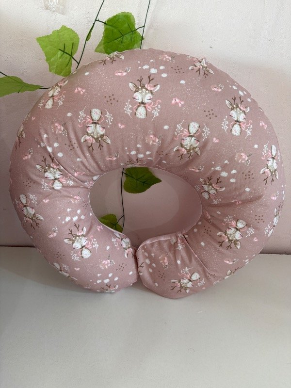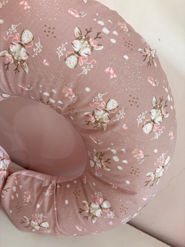 Almohadón de amamantar ciervo rosa viejo c/ rosa bebé
