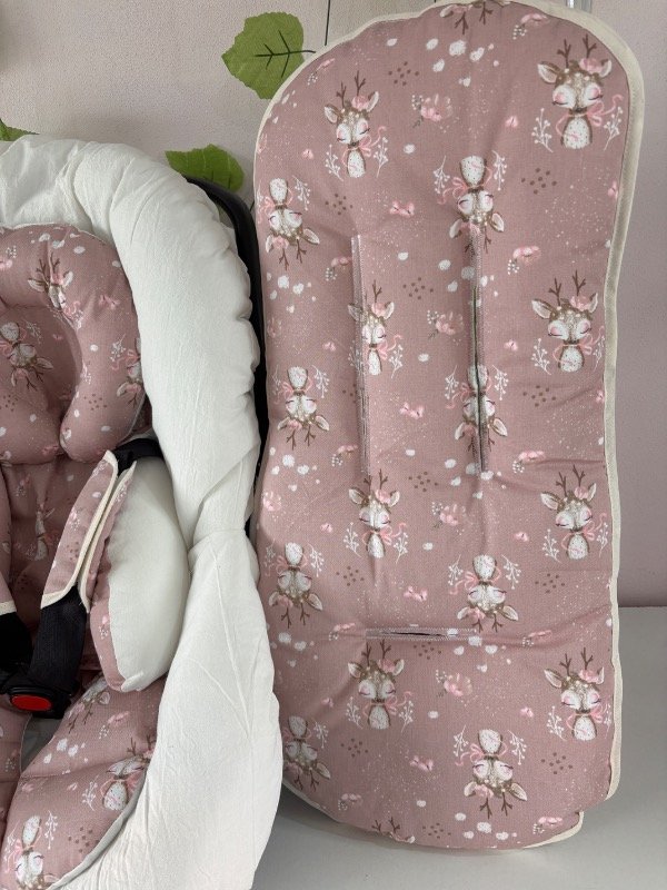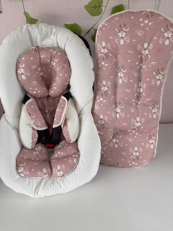 Funda de huevito, reductor de huevito, cochesitos y butacas de auto con cabecita desmontable y colchón de coche todo a juego.