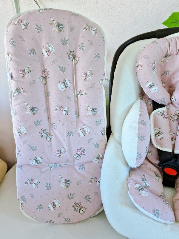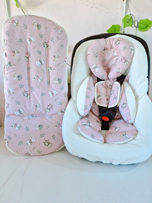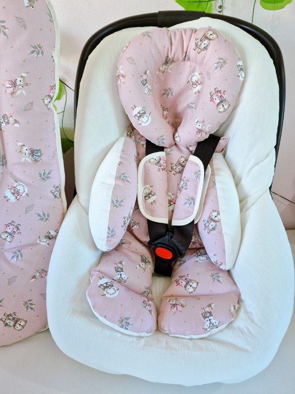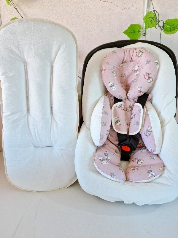 Funda de huevito, reductor de huevito, cochesitos y butacas de auto con cabecita desmontable y colchón de coche todo a juego.