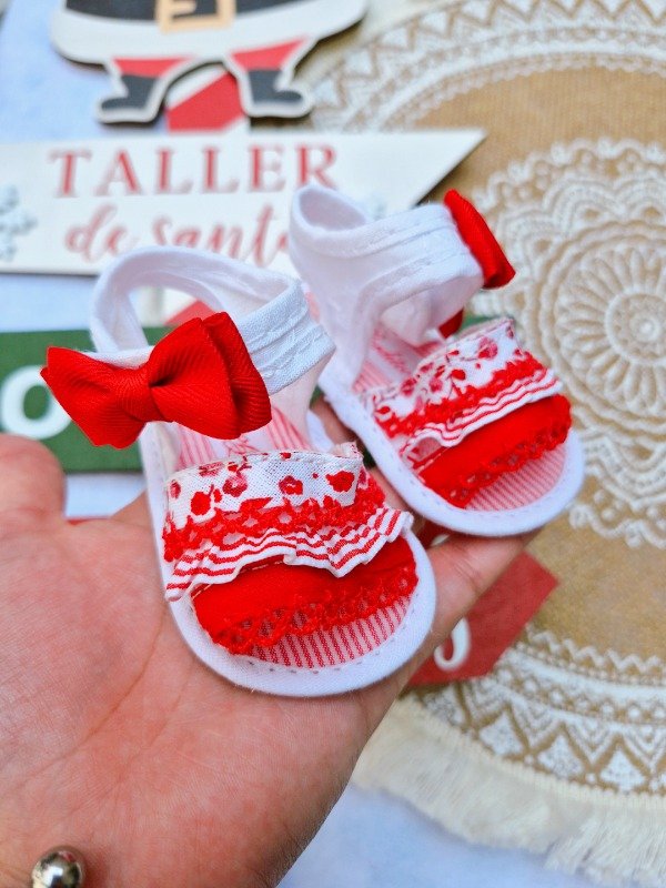 Blancas con detalles de flores y cuadrille rojo