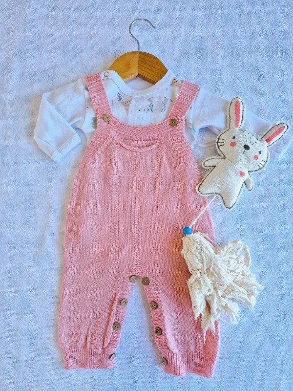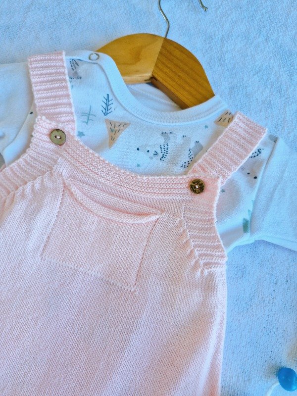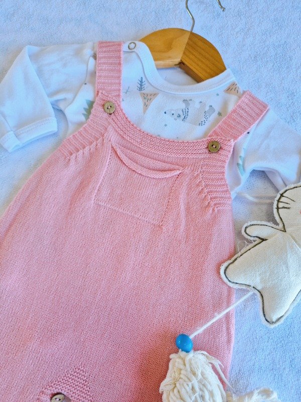 Jardonero de hilo pañalero, con botones de coco y detalle de bolsillo