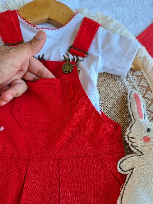 Jardinero navideño tipo jean rojo