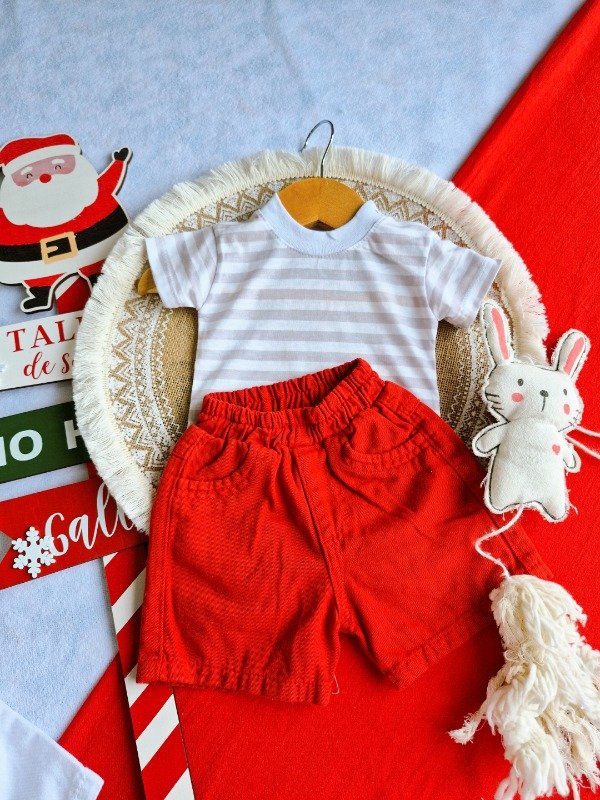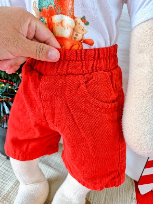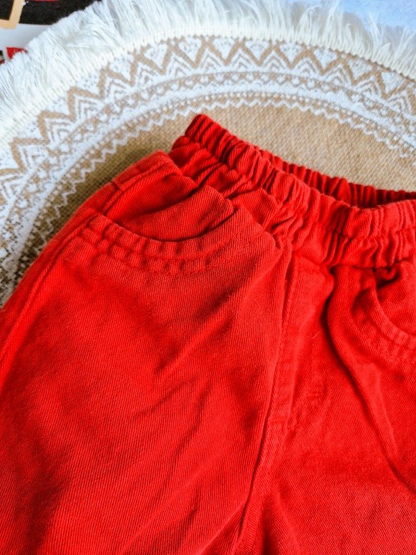 Short de jean rojo con elastico y detalles de bolsillos atras