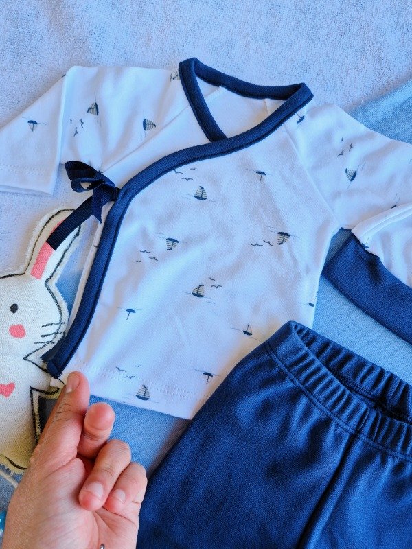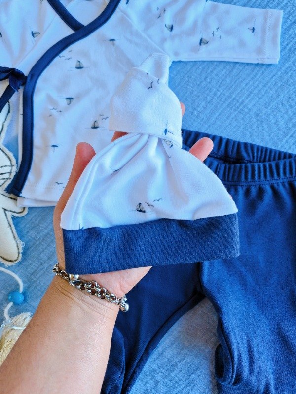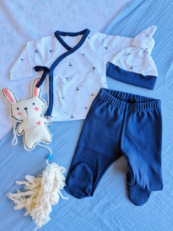 Set de nacimiento de bata cruzada, ranita y gorrito.