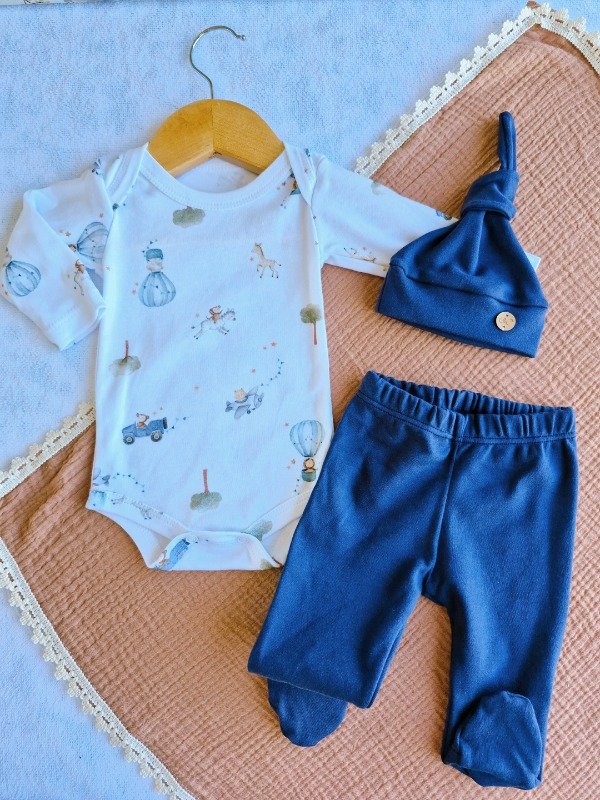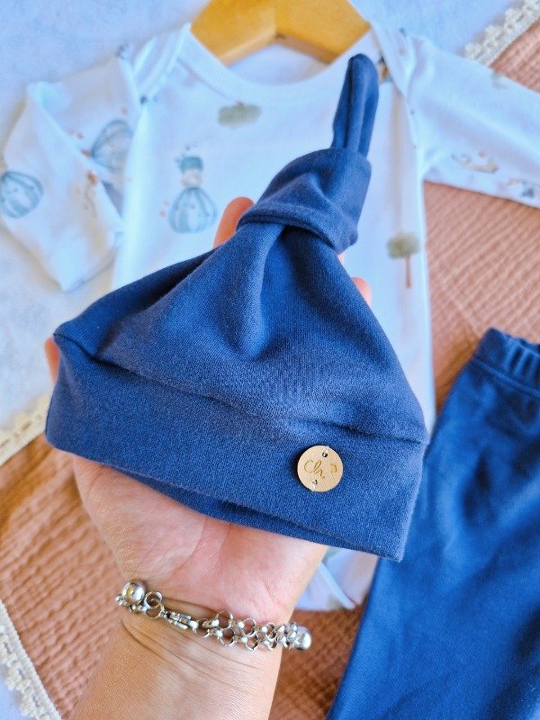 Set de nacimiento de bata cruzada, ranita y gorrito.