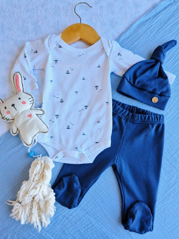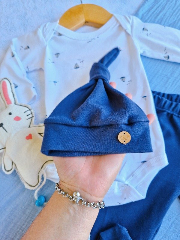 Set de nacimiento de bata cruzada, ranita y gorrito.