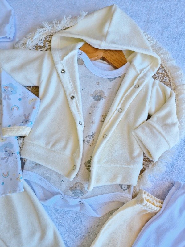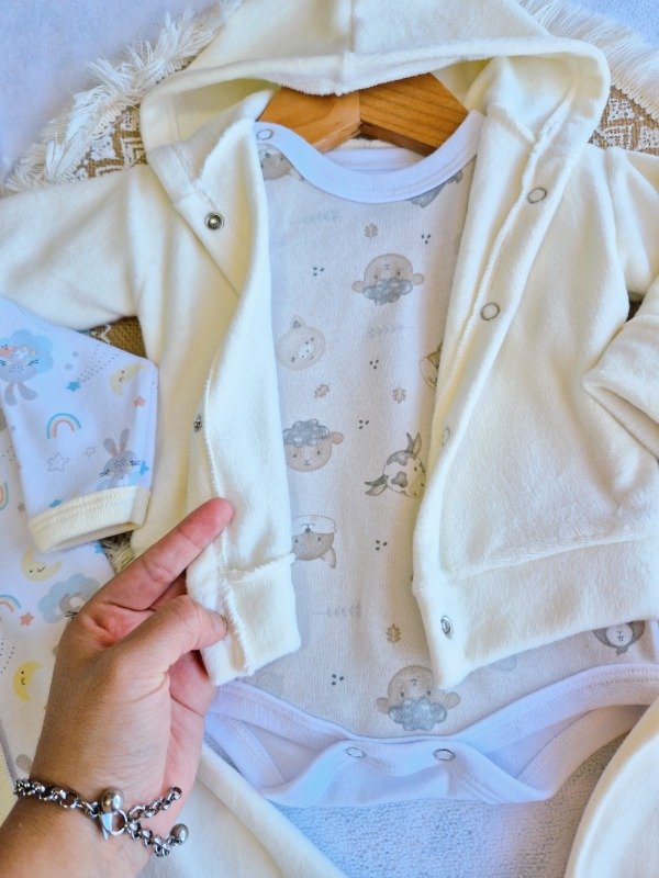 Un set de nacimiento de body, ranita y gorrito