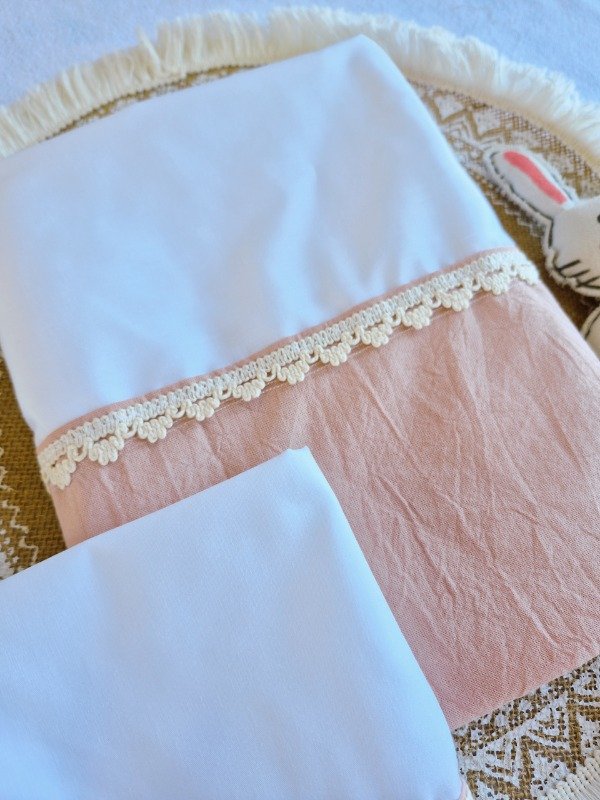 Con guarda lisa y detalles de puntilla.