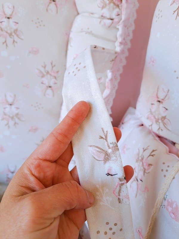 Por un lado el set de cuna: con acolchado, chichonera, sábanas, trenza que cubre un costado de la cuna y un almohadon personalizado🫶🏻 todo REVERSIBLE