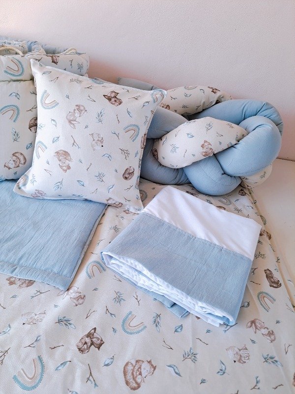 El combo cuna contiene acolchado, chichonera, sabanas y almohadon.