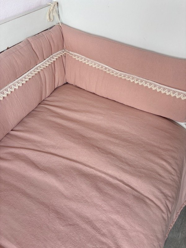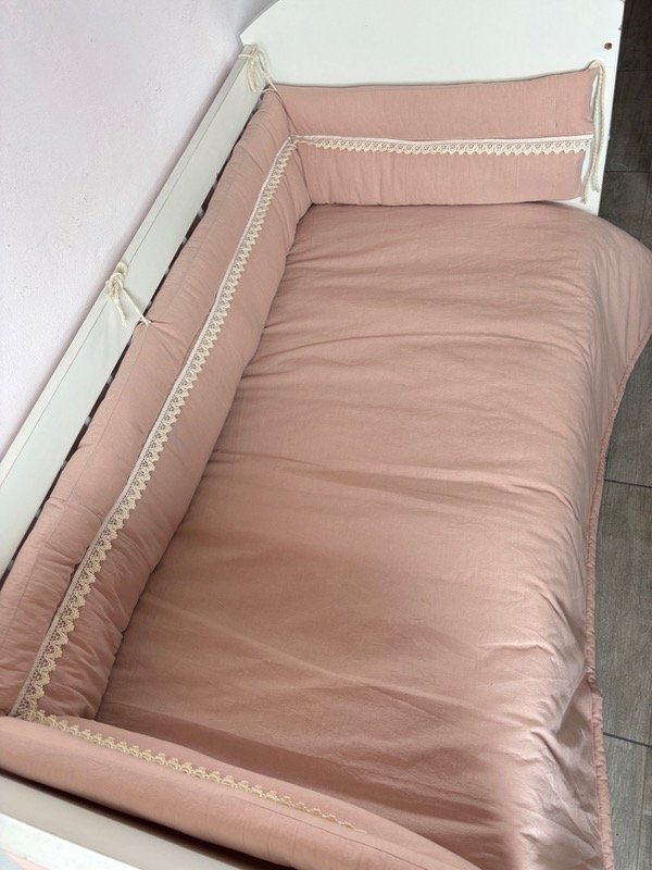 El combo cuna contiene acolchado, chichonera, sabanas y almohadon.
