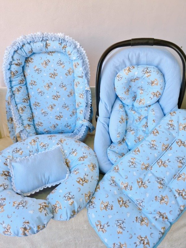 -Nido de contención con manijas y puntillas que hacen una pieza única,con su almohadita decorativa.